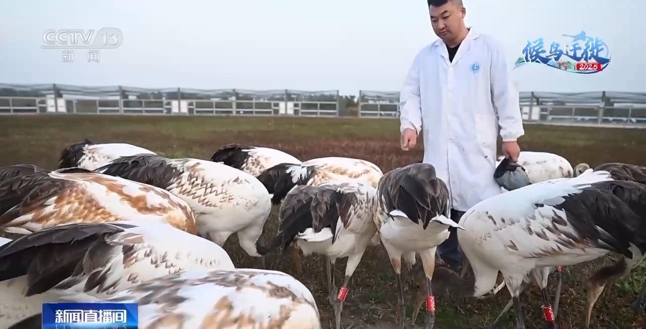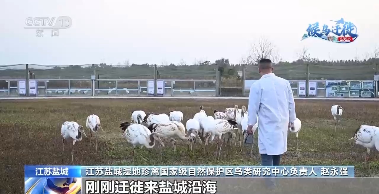 江蘇鹽城濕地珍禽國家級自然保護區(qū)鳥類研究中心負(fù)責(zé)人 趙永強:主要是讓它們能夠盡快地融入到剛剛遷徙來鹽城沿海越冬丹頂鶴的野生種群里面,充分地進行一些交流。