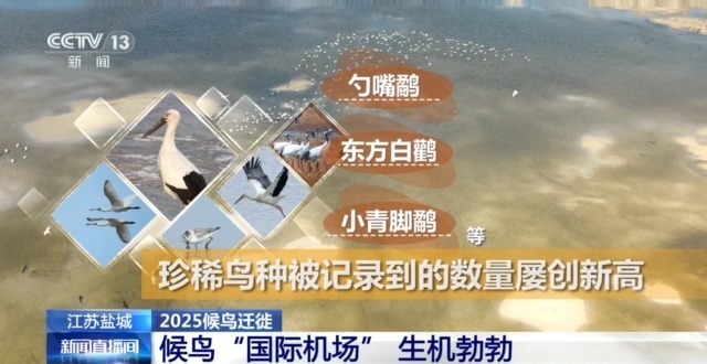截至2025年越冬鳥類調(diào)查結(jié)束,鹽城市野生鳥類記錄共計23目73科447種,占全國鳥類種數(shù)的29.48%。鹽城582公里的海岸線和沿海灘涂,每年迎來超過300萬只候鳥在這里停歇,其中,在此越冬的野生丹頂鶴種群數(shù)量達400到600只,成為全球矚目的“候鳥國際機場”。勺嘴鷸、東方白鸛、小青腳鷸等珍稀鳥種被記錄到的數(shù)量屢創(chuàng)新高。