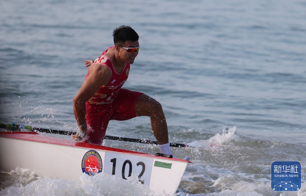 ↑ 遼寧隊選手王鑫巖在男子單人雙槳計時賽中。