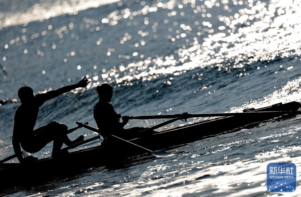 ↑ 遼寧隊選手王思璇(右)和孫滿(左)在混合雙人雙槳計時賽中。