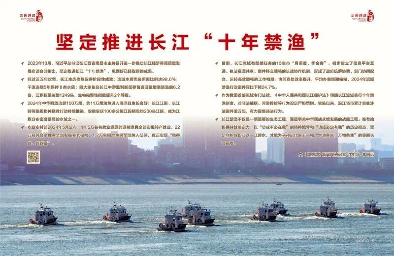 ◇2023年10月,習近平總書記在江西省南昌市主持召開進一步推動長江經濟帶高質量發展座談會時指出,堅定推進長江“十年禁漁”,鞏固好已經取得的成果。