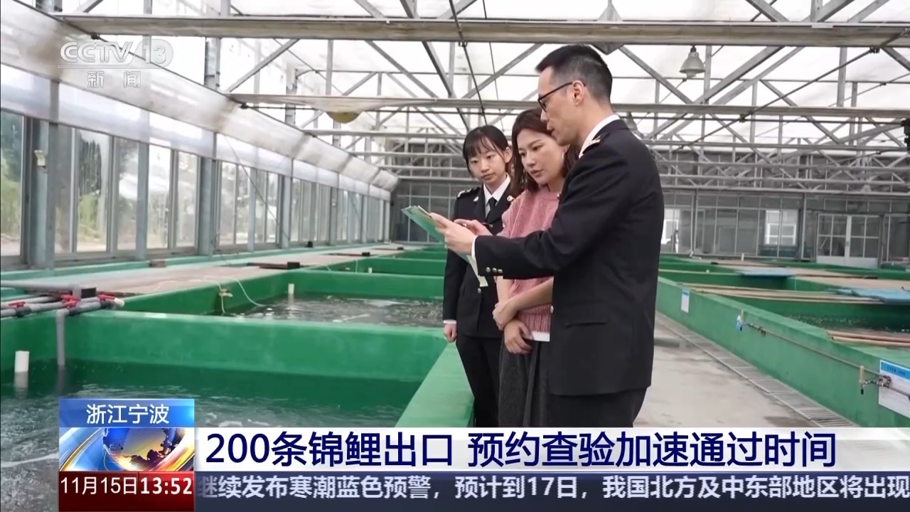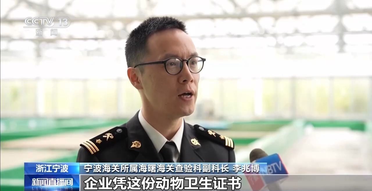 寧波海關所屬海曙海關查驗科副科長 李兆博:通過開通綠色通道,優先查驗,同時檢驗合格之后要出具一份動物衛生證書,企業憑這份動物衛生證書在馬來西亞當地海關辦理清關,爭取最大限度縮短錦鯉的在途時間,保障錦鯉的存活率。