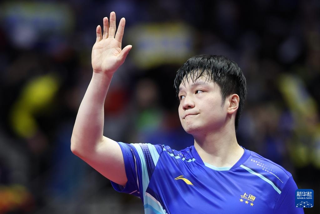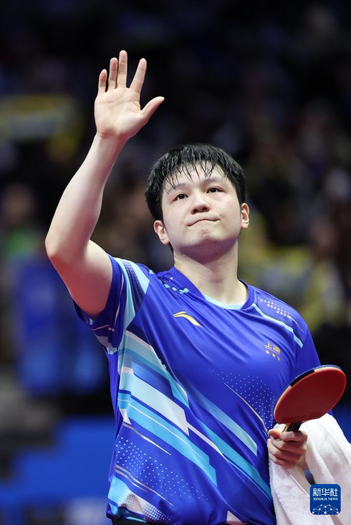 11月15日,樊振東在比賽后向觀眾揮手致意。