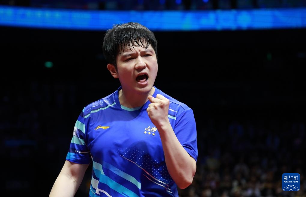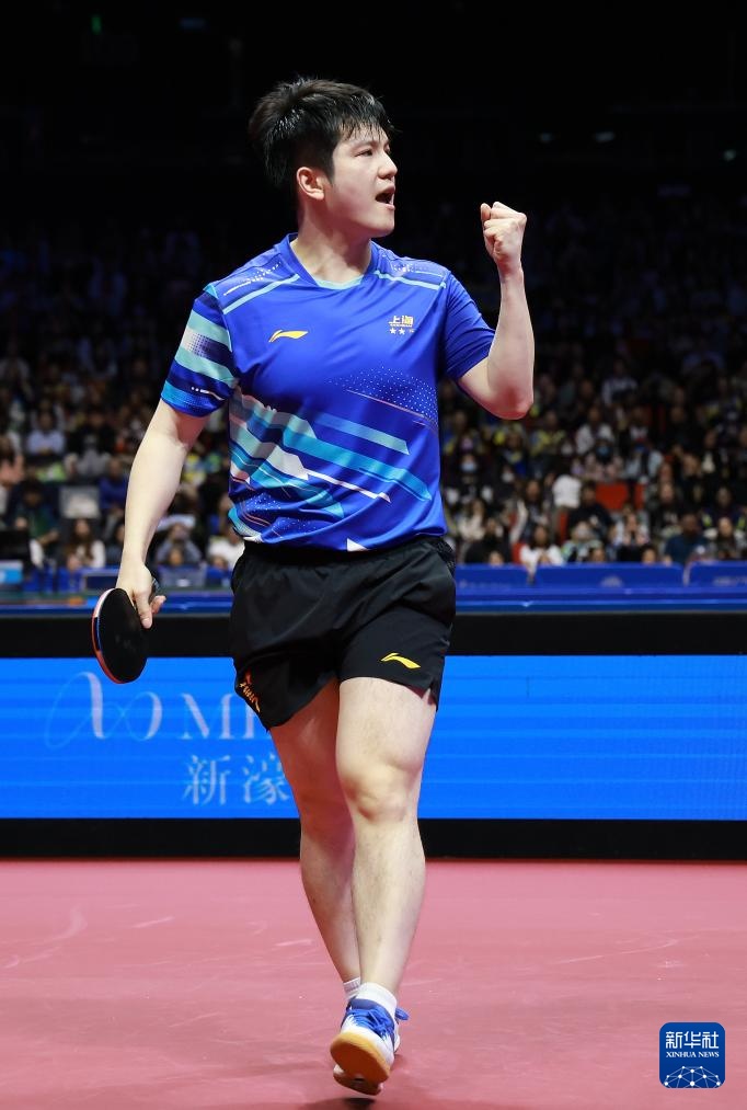 11月15日,樊振東在比賽中慶祝。