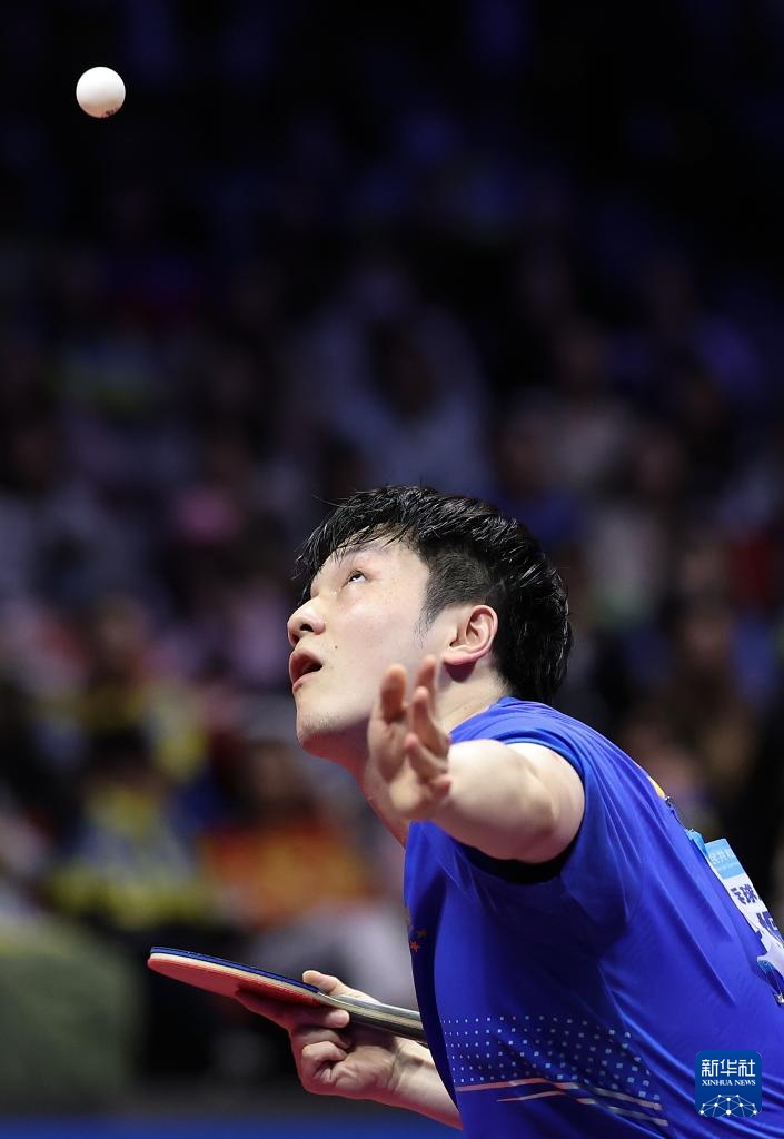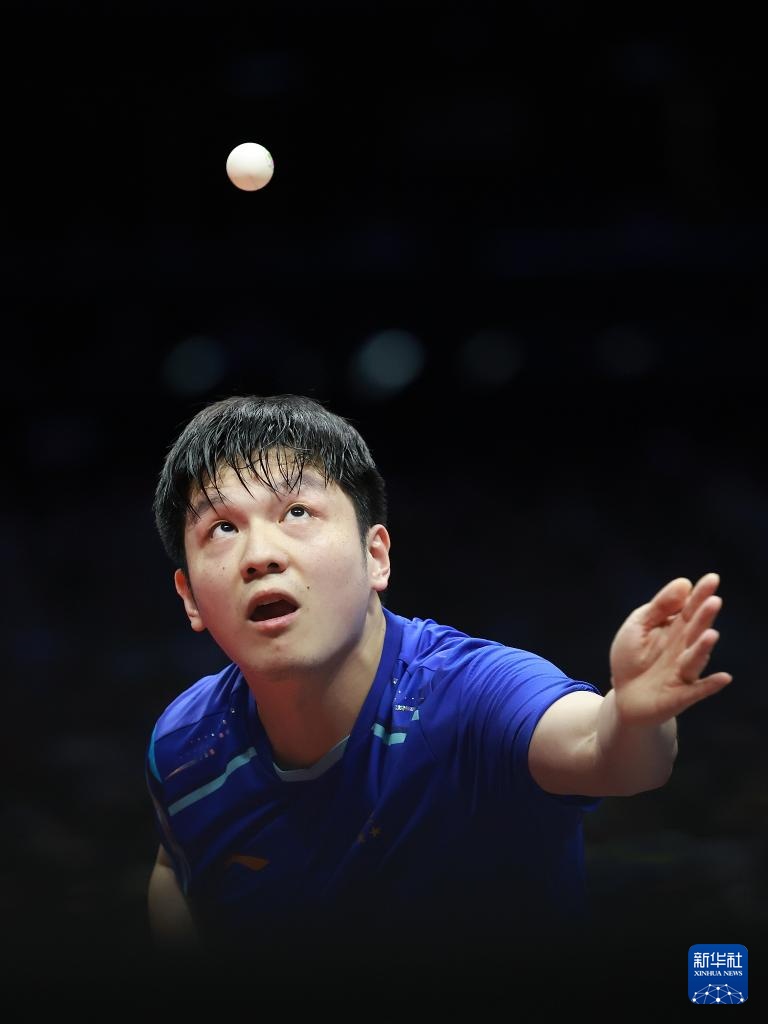 11月15日,樊振東在比賽中發球。