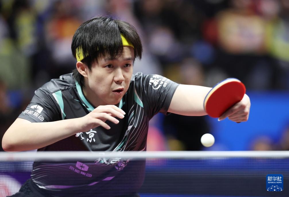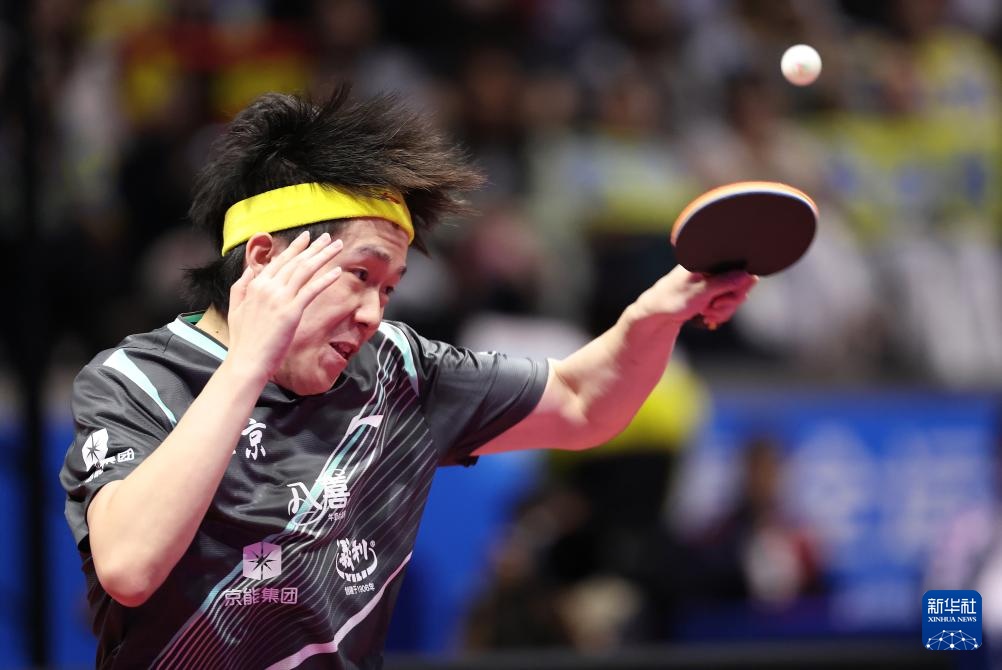 11月15日,樊振東在比賽中回球。