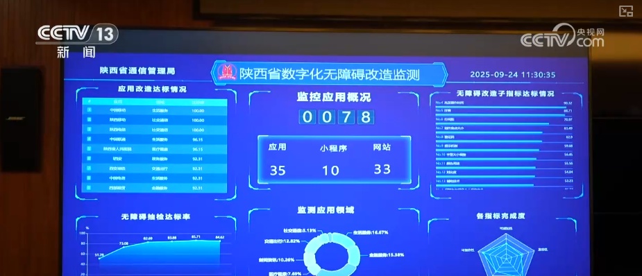 同時,陜西省通信管理局專門開發了“陜西數字無障礙監測平臺”,重點監測包括交通、金融等涉及民生9大領域78個重點互聯網應用,對其信息無障礙改造進度進行常態化監控和督促整改。