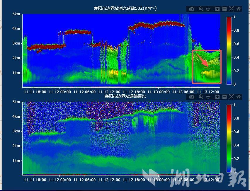 襄陽邊界站顆粒物激光雷達觀測結果。
