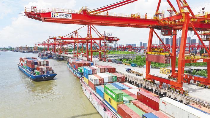 武漢陽邏港繁忙景象。(湖北日報全媒記者 何宇欣 攝)