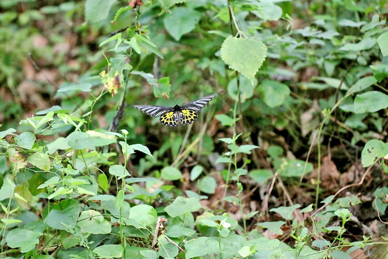 據了解,本次調查與監測由華中農業大學副教授吳剛帶領隊員馮蒙恩、徐杰、譚炎淋、張鐸等人開展,團隊在兩年內進行了三次大規模野外調查。“本次昆蟲多樣性本底調查與監測共計調查到1174種昆蟲,就我近些年了解到的數據來看,這在湖北屬于非常豐富的調查數量,也說明咱們的生態環境在逐步向好和穩定。”吳剛介紹,“調查中發現的金裳鳳蝶為鳳蝶科翼鳳蝶屬,是中國體型最大的蝴蝶。其飛行姿態優美,前翅黑色,后翅金黃色和黑色交融的斑紋在陽光照射下金光燦燦,顯得華貴美麗。”