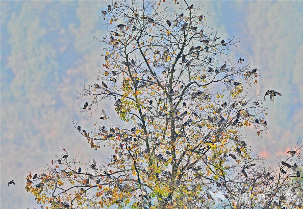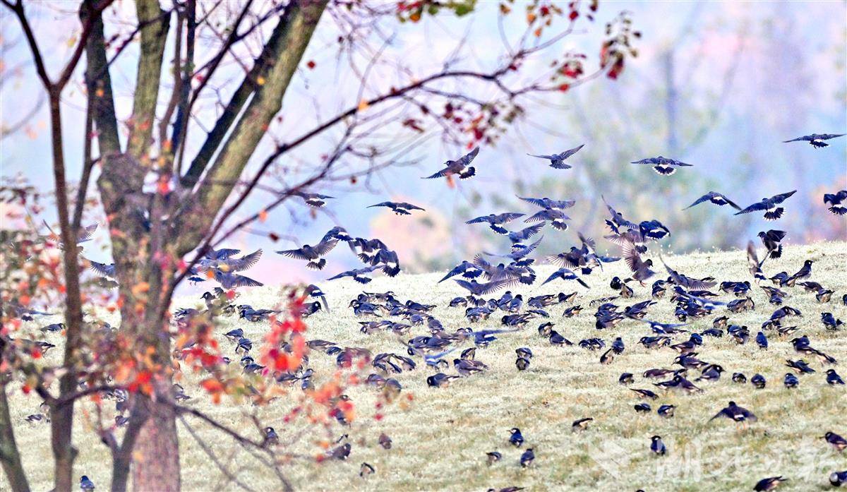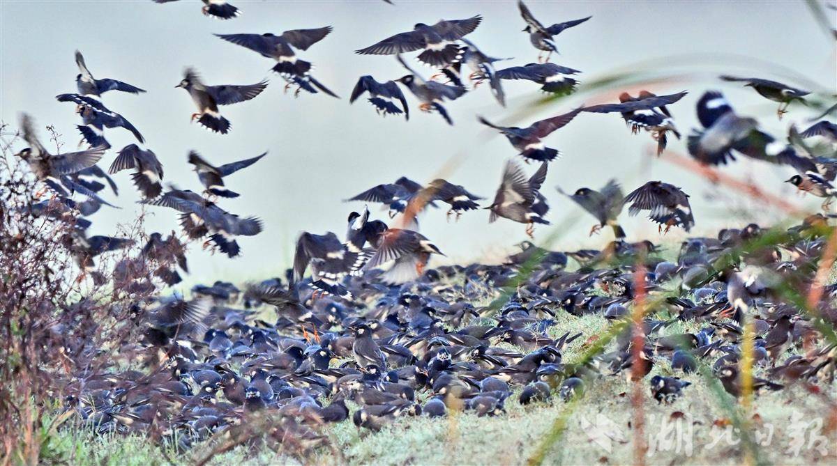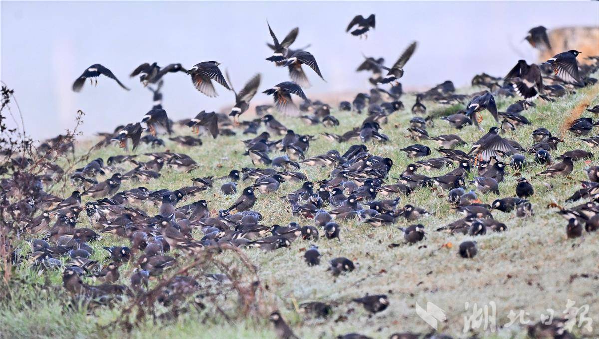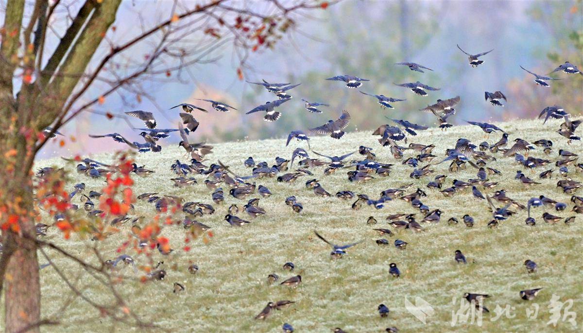 11月21日清晨,宜昌卷橋河濕地?zé)狒[非凡,一群群絲光椋鳥在此自由飛翔、嬉戲,樹林間、草地上、溪水邊隨處可見它們靈動的身影。近年來,宜昌生態(tài)環(huán)境持續(xù)改善,濕地生態(tài)功能穩(wěn)步提升,為絲光椋鳥等鳥類提供了優(yōu)質(zhì)棲息環(huán)境,鳥類數(shù)量逐年增多,成為當(dāng)?shù)厣鷳B(tài)保護(hù)成效的鮮活見證。(湖北日報(bào)全媒記者 劉曙松 攝)