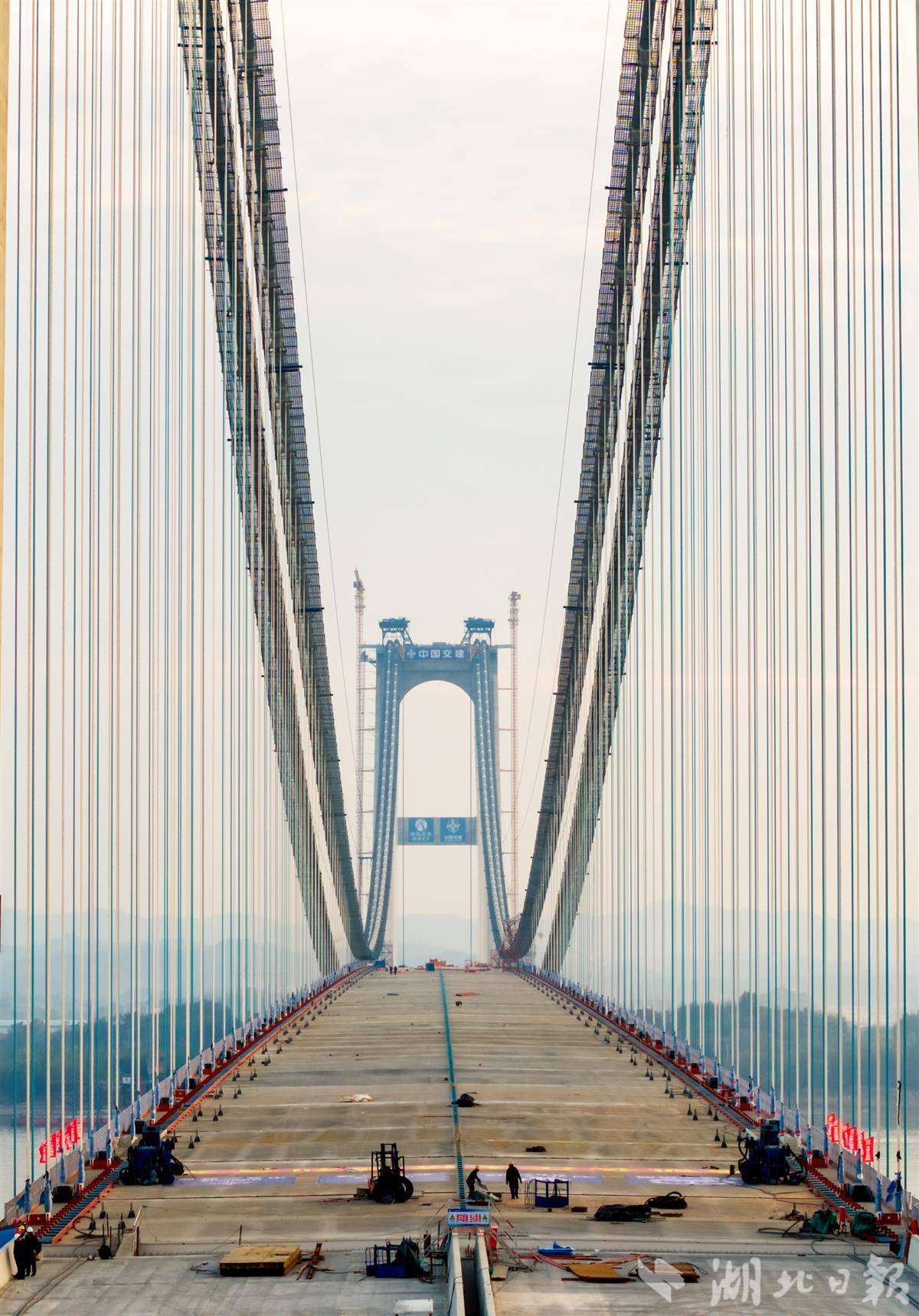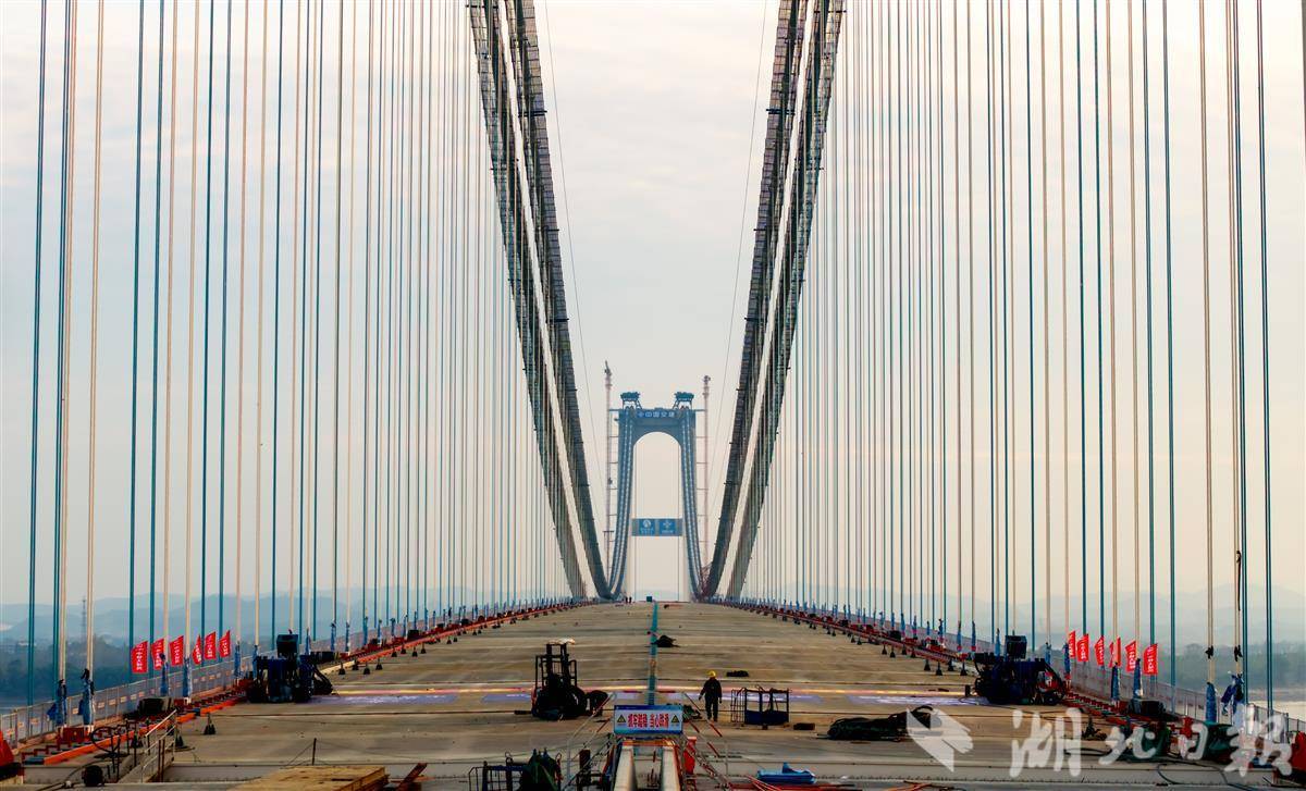 11月20日,燕磯長江大橋正在進行橋上箱梁鋪裝掃尾工作。燕磯長江大橋是位于鄂黃長江大橋下游6.7公里處的橋梁,北岸是黃岡市黃州區,南岸是鄂州市燕磯鎮。作為鄂州國際物流核心樞紐的重要配套工程,大橋建成后將實現黃岡至鄂州花湖機場15分鐘直達,不僅能完善湖北省高速公路網與過江通道布局,更能串接“公鐵水空”綜合交通運輸體系,支撐臨空經濟區快速發展,加速“武鄂黃黃”都市圈一體化進。(視界網 王江 攝)