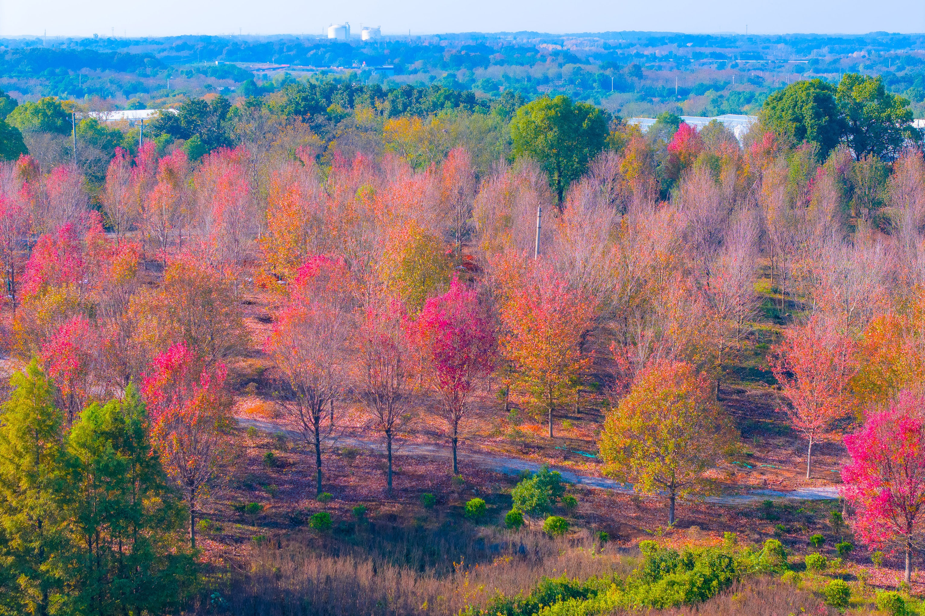 與此同時,作為安山生態明珠的安山郊野公園紅葉谷也同樣迎來了高光時刻。這里種植的“十月光輝”“夕陽紅”等名貴紅楓品種正值盛彩,深紅、赭石、金黃交織碰撞,構成了一條絢麗的景觀長廊。
