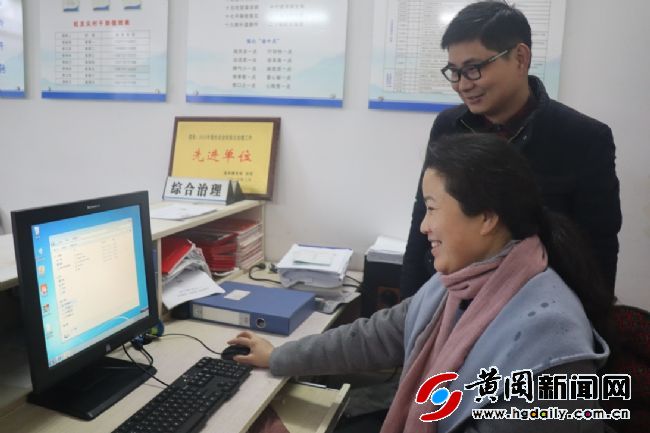 圖為張利娜幫蛇龍尖村黨支部書記李又歡調試贈送的電腦。通訊員 劉釗海 攝