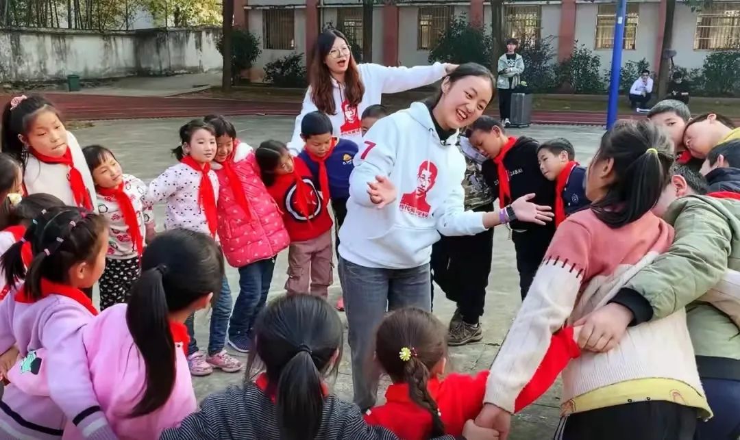 這是惲代英菁英學校學員在前往革命老區咸寧市賀勝橋鎮的余花小學的路途中即興創作的口號,到達地點后與24名在校生開展素質拓展活動。學員們組織大家進行“楊柳春風搖啊搖”熱身小游戲,增進了解、活躍氣氛,分別帶隊三組學生開展“運水接力”友誼賽,增強學生協作力、凝聚力,在你追我趕中釋放孩童活潑天性。在美術世界中認識超輕粘土,引導孩子們充分發揮想象力,大膽創作“夢中花園”。