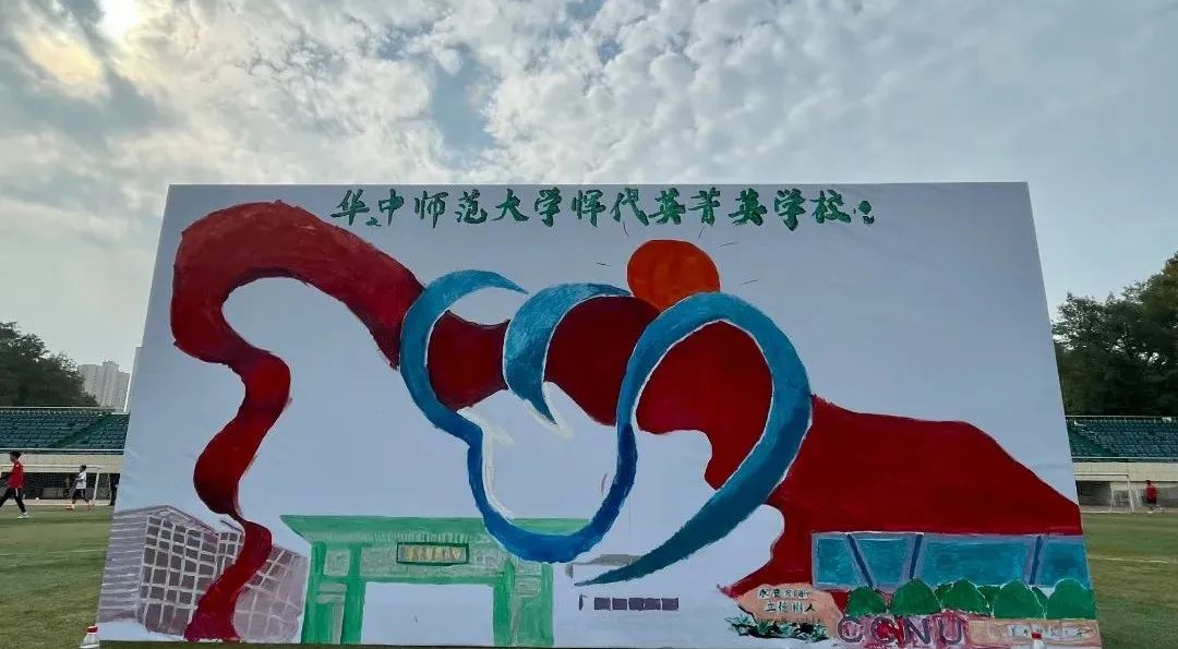 踏著晨曦,懷著憧憬,惲代英菁英學校七期學員開班儀式后,在“破冰活動”中認識彼此,共繪華師藍圖。整幅圖畫以字母“CCNU”的象形為主體,形象為“山”,代表著桂子山,即華中師范大學。而進發向上的“太陽”,既是指惲代英精神光芒四射、永垂不朽,表達著一種希望、積極向上的情懷。“山”和“太陽”的組合,意味著我們是桂子山上即將升起的新希望。一條寬厚中國紅綢帶由過去延伸到未來,傳承著先輩的革命基因,也寓意著破冰后的惲代英班集體更加同心協力!
