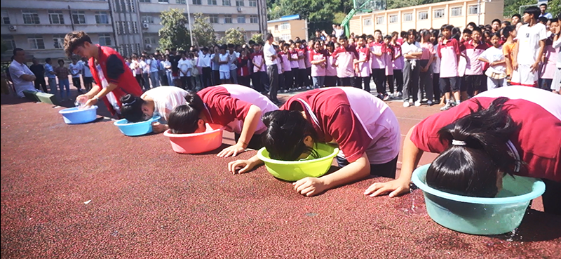 安全教育活動在“一盆水閉氣”體驗活動中拉開帷幕。隨著號令響起,自薦參加體驗活動的幾名同學彎腰俯身把臉扎進水盆里,口、鼻淹在水下憋氣。演練中,有的同學僅能堅持七八秒鐘,有的同學能堅持近1分鐘。通過體驗,大家紛紛表示,在憋氣中“難受,恐懼,絕望!”從而讓同學們體會到“溺水可怕,生命可珍貴!”第二組演練了一位身在岸邊的同學俯身去拖拉水下落水者;第三組演練了一組同學手牽手施救水下溺水者,感受施救的難度,體驗落水者把施救者拖入水下的情景。