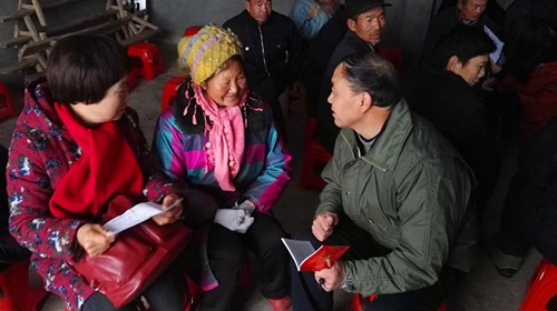 梁發雙(右)在扶貧聯系點與村民交談(圖片由受訪者提供)