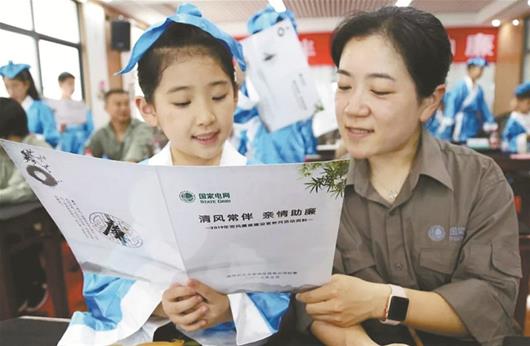 圖為:新洲區(qū)供電公司組織親情助廉活動,父母和子女齊聲誦讀廉潔“三字經”。
