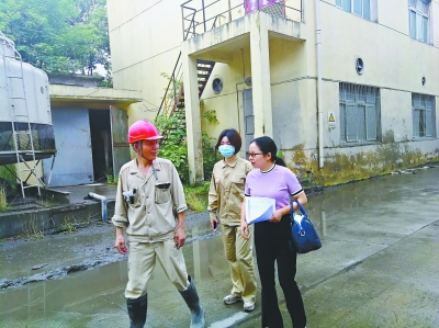 2019年6月,市環科院黃宇(右一)到某企業調研污染治理措施落實情況