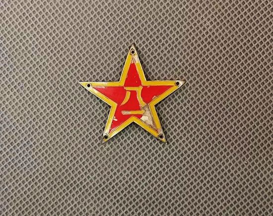 這是1949年中央軍委作戰處參謀趙光琛參與設計制作的中國人民解放軍軍徽樣徽(正式使用版)。