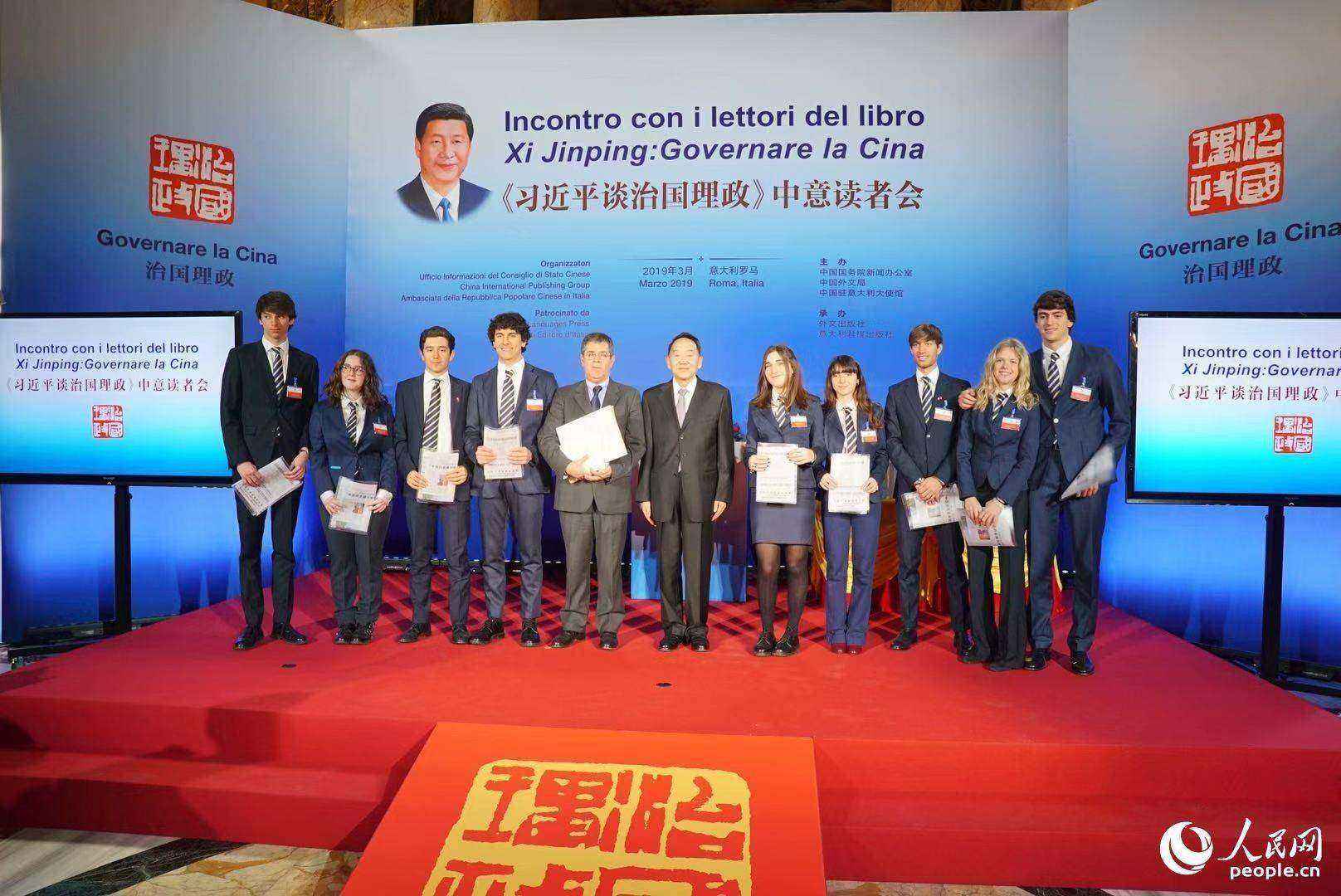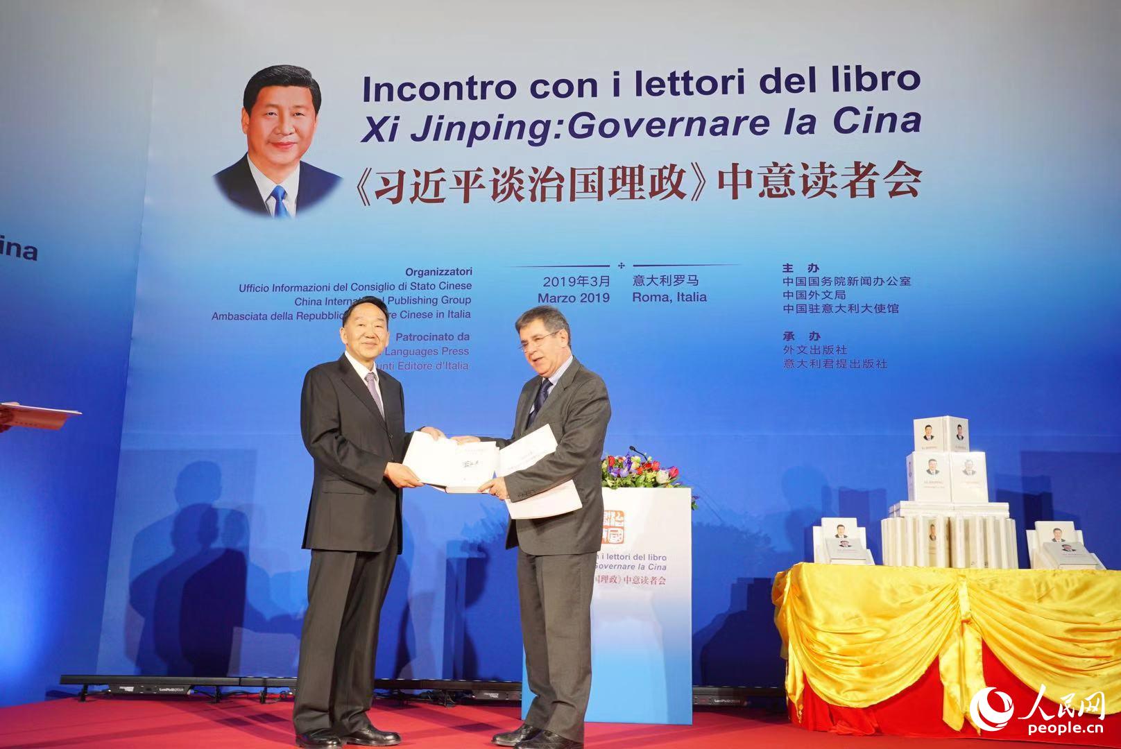 人民網羅馬3月20日電(記者管克江、柴哲彬、李翔、彭訓文、王云松、趙鐸)在國家主席習近平即將對意大利進行國事訪問前夕,由中國國務院新聞辦公室、中國外文局、中國駐意大利大使館等共同舉辦的《習近平談治國理政》中意讀者會在意大利首都羅馬舉行。中宣部副部長蔣建國、中國駐意大利大使李瑞宇、意大利參議院外委會主席佩德羅切利、意大利前眾議長塞雷尼、前外長阿爾法諾等約200名中外嘉賓出席活動。