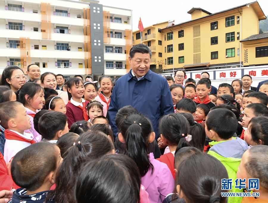 習近平首先來到中益鄉小學。學校操場上,小學生們正在開展課外文體活動。看到總書記來了,學生們圍攏過來,紛紛問習爺爺好,總書記高興地同大家交談,詢問他們學習和生活情況。中益鄉地處大山深山之中,群眾居住比較分散,孩子上學是個難題。習近平指出,“兩不愁三保障”,很重要的一條就是義務教育要有保障。再苦不能苦孩子,再窮不能窮教育。要保證貧困山區的孩子上學受教育,有一個幸福快樂的童年。習近平走進師生食堂,仔細察看餐廳、后廚,了解貧困學生餐費補貼和食品安全衛生情況。習近平囑咐學校和老師既要當好老師,又要當好臨時家長,把學生教好、管好。要把安全放在第一位,確保學生在學校學、住、吃都安全,讓家長們放心。他希望老師們扎根山區,獻身鄉村教育事業,為群眾脫貧貢獻一份力量。
