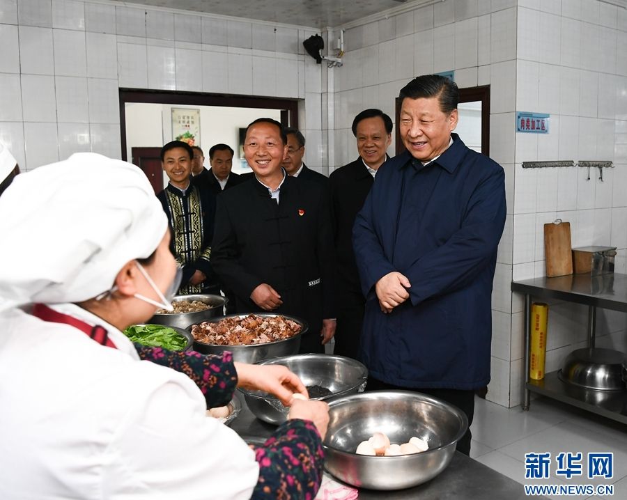 這是4月15日下午,習近平在石柱土家族自治縣中益鄉小學走進師生食堂,了解貧困學生餐費補貼和食品安全衛生情況。 新華社記者 謝環馳 攝