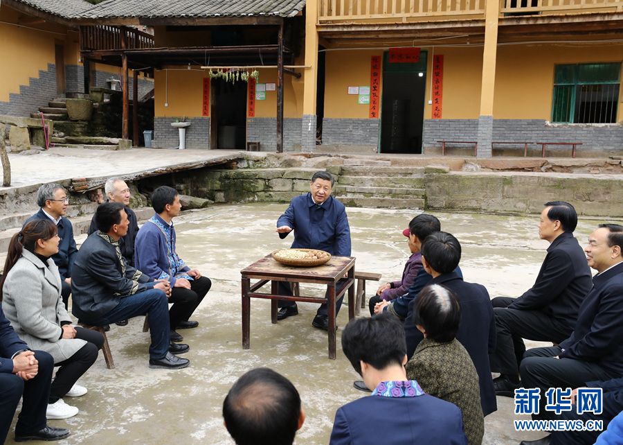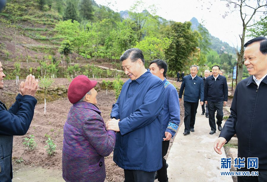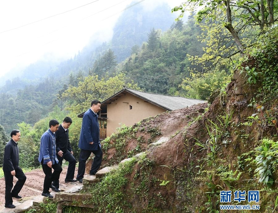 這是4月15日下午,習近平在石柱土家族自治縣中益鄉華溪村看望貧困戶譚登周一家。 新華社記者 謝環馳 攝