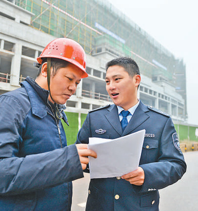 車開到二塘街,傅亮的執法電話響了,有市民投訴一處工地施工,影響休息。他們立刻趕往現場,發現居民樓旁邊的一處工地,還有幾個工人在用切割機切割鋼材。“有人反映噪音太大,早點停工,回去休息吧。”傅亮提醒工人,工人們這才依依不舍地離開。“執法也要有溫度,他們是臨時施工,且是初犯,我們主要進行宣傳引導,情節嚴重時才會處罰。”傅亮說。