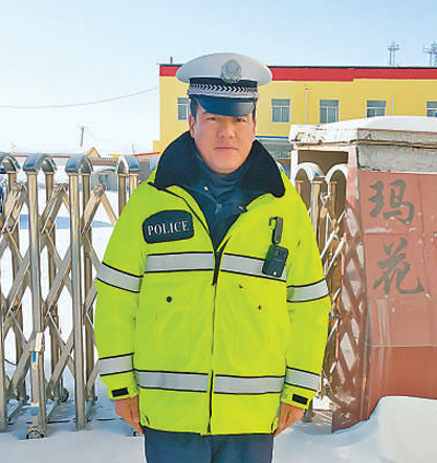 孫建忠所在的交警中隊有5個人,負責368公里交通線的安全通行。他用不太流利的安多藏語叮囑司機注意安全,站上3分鐘,口罩上就結了一層冰碴。他不時拍拍身上的雪,盡量讓警服顯得干凈整齊。