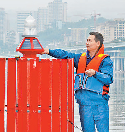 “在船上工作了32年,我養成一個壞習慣,每隔兩三個小時就自動醒來,尤其聽到水聲的時候。”柯明貴是重慶市嘉陵江航道管理處石馬河航道站站長,這艘船是他的基地。航道站負責管理維護15公里嘉陵江河道,根據水位及時調整航標,保障往來船只安全通行。除了柯明貴,這里還有8名工作人員。無論嚴寒酷暑,刮風下雨,航道站每天開航。