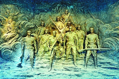 圖為山東乳山馬石山十勇士紀念館里的十勇士雕像。新華社發