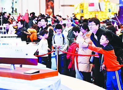2月10日,家長帶著孩子來到中國國家博物館參觀“偉大的變革——慶祝改革開放40周年大型展覽”。春節期間,“偉大的變革——慶祝改革開放40周年大型展覽”迎來參觀熱潮,單日現場觀眾最多達6.8萬人次。新華社發