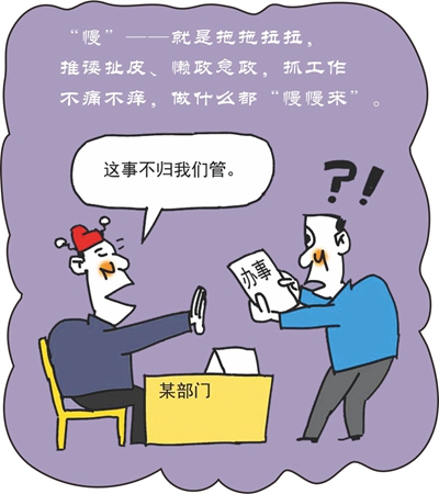 拖拖拉拉、推諉扯皮、懶政怠政,抓工作不痛不癢,做什么都“慢慢來”。