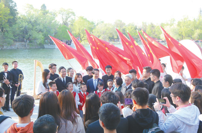 “眼底未名水,胸中黃河月。”五四青年節前夕,北京大學上千名師生齊聚未名湖畔,用一場“歌唱祖國,傳承接力”主題教育活動,紀念五四運動100周年,慶祝中華人民共和國成立70周年。正所謂“詩言情,歌詠志”。瑯瑯書聲,悠揚歌聲,讓人重溫100年前那段激情燃燒的歲月,煥發五四精神生生不息的時代光芒。