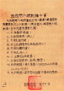 圖為:④《中共江漢區(qū)第四地方委員會(huì)檔案》中的部隊(duì)入城紀(jì)律十條