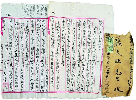 參加過黃麻起義和長征的老紅軍張?zhí)靷ィ?937年3月至1942年7月,隨軍駐扎陜西涇陽縣云陽鎮(zhèn)、甘肅慶陽縣一二九師三八五旅司令部和在延安抗大學(xué)習(xí)時(shí),寫給母親、族叔、胞兄等人的11封抗戰(zhàn)家書仍然留存至今(圖六)。字里行間,流露出對中國必勝、日本帝國主義必?cái)〉膱?jiān)定信心。