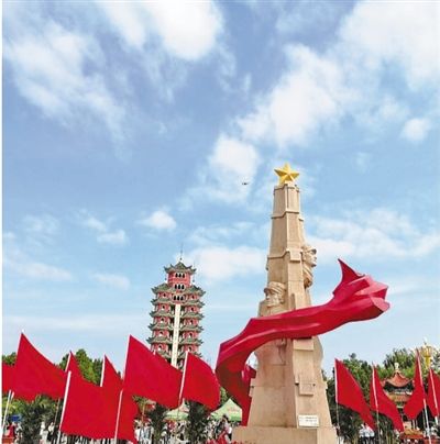 三軍會師紀念塔和主題雕塑。本報記者 銀 燕攝