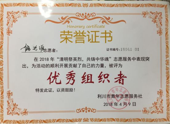 6.2018年“清明祭英烈,共鑄中華魂”志愿服務優秀組織者(利川市青年志愿服務社)