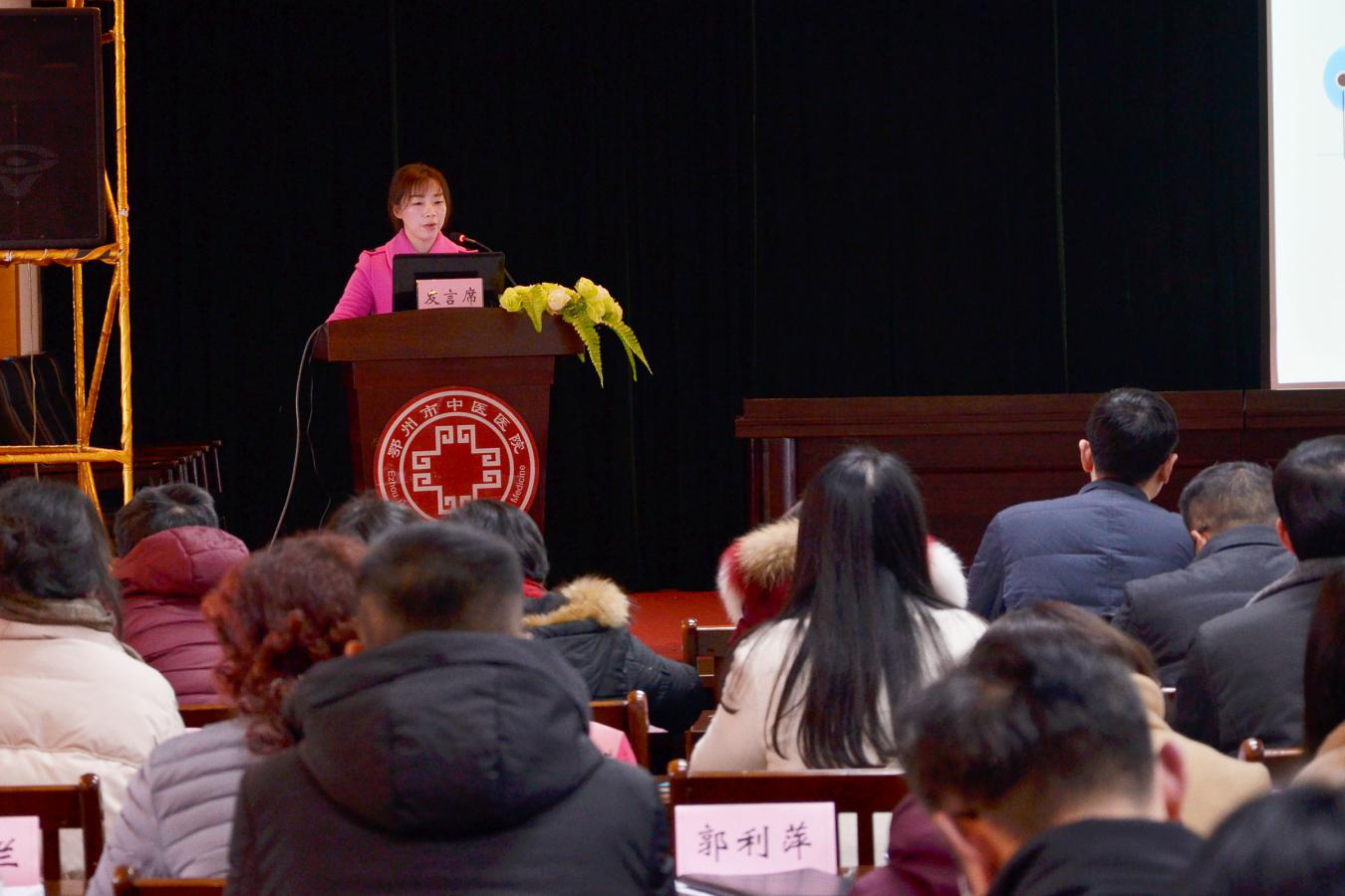 圖為鄂州市中醫醫院腫瘤科護士長向俐述職
