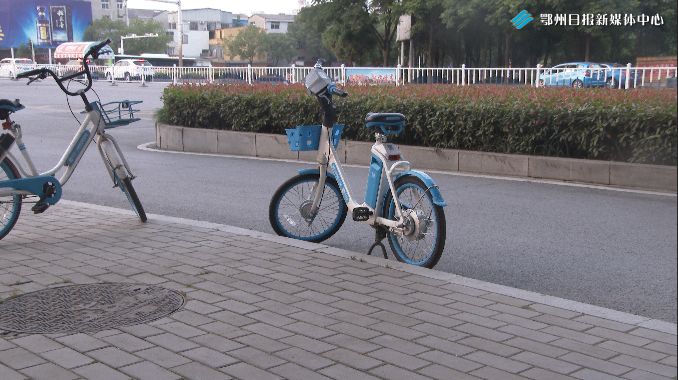 共享電瓶車亂停亂放在火車站廣場前的人行道上...