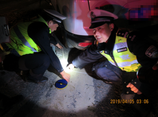 鑒于劉某言語反常,前后回答與案情細節不符,民警推斷其可能并非肇事司機。由于事發路段無路燈、無電子攝像頭,民警只有采取最原始的調查走訪工作。通過聯系沿線村莊治保主任及農村交通勸導員,采取入戶調查工作方法仔細搜尋線索。