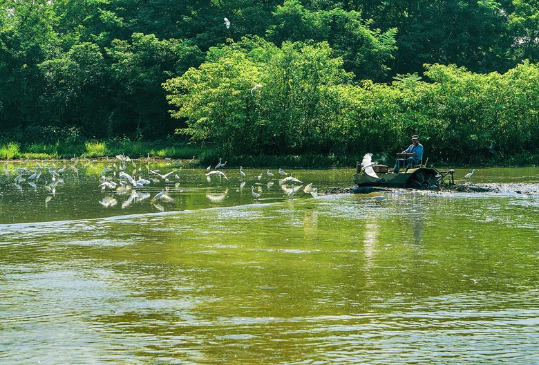 6月24日,蒲團鄉橫山村農民正忙著翻耕農田。在田間,一群白鷺緊緊地圍著耕田機時而上空盤旋,時而追逐覓食,構成一幅人鳥和諧共處的田園美景。全媒體記者 方仲華 通訊員 何景星 攝