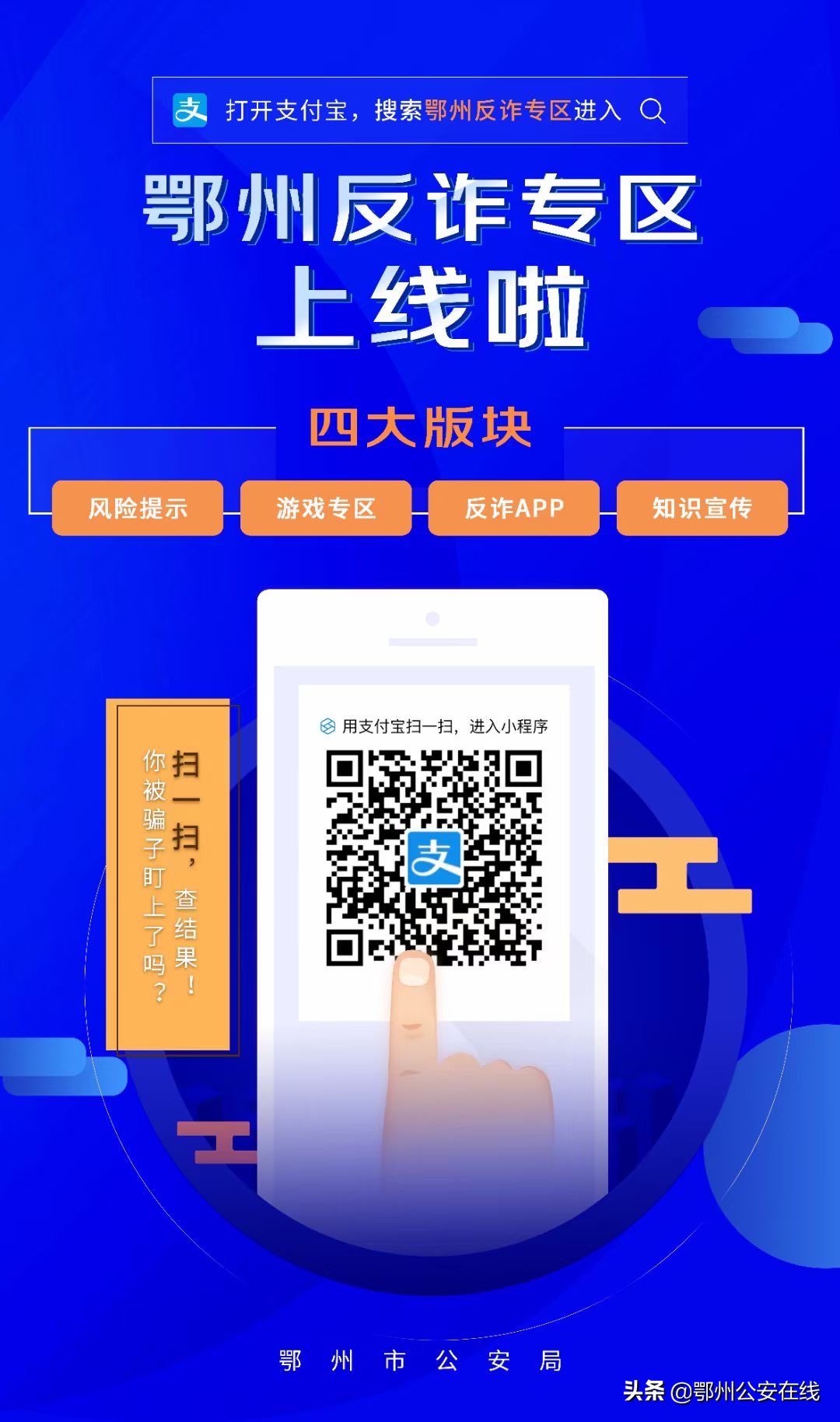 8月16日,在鄂州市局領導的高度重視和武漢市局的大力支持下,支付寶“鄂州反詐專區”正式上線試運行。“鄂州反詐社區”內設四大板塊,其中“風險提示”板塊主要是依據實時預警數據,對可能或者已經遭受電詐分子不法侵害的用戶,根據風險等級進行標碼操作,并進行彈窗提醒。