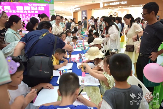在文藝匯演區(qū),小朋友們歡聚一堂。民族舞、拉丁舞、街舞、唱歌、朗誦等表演好戲連臺,精彩紛呈。近30名兒童在繪畫區(qū),盡情發(fā)揮自己的想象力和創(chuàng)意,描繪出一幅幅飽含童真、童趣的作品。