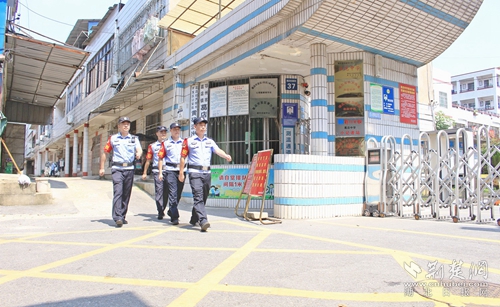 葛帆(左一)帶隊在校園附近巡邏。通訊員 供圖