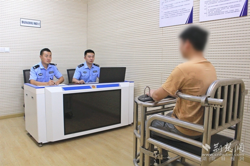 葛帆(左二)和同事審訊嫌疑人。通訊員 供圖