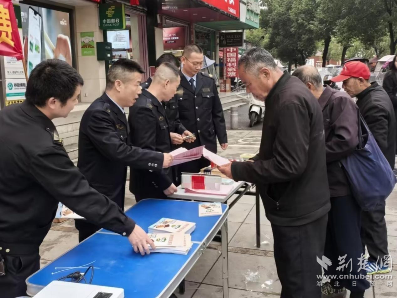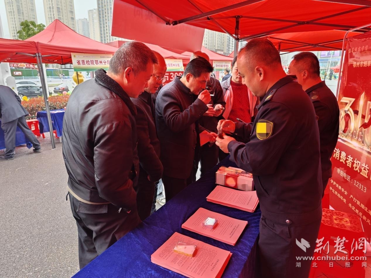 “您看下這個案例,去年咱們成功打擊掉一個販賣假煙的犯罪團伙,就是通過群眾舉報的線索。”3月14日,鄂州市澤林鎮集市上的“普法小站”成為焦點。