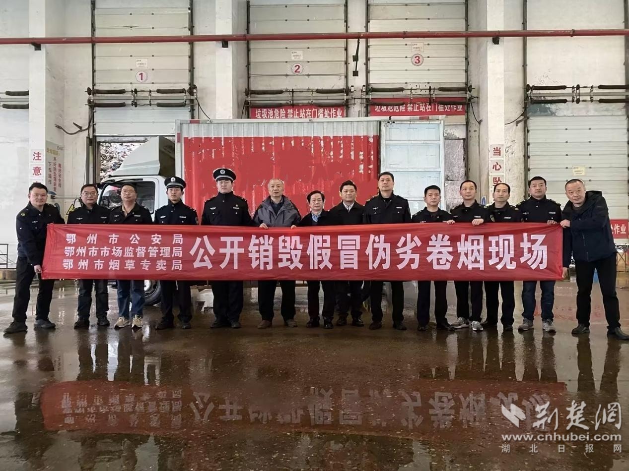 鄂州市局聯合公安、市場監督管理部門公開集中銷毀假冒偽劣卷煙。通訊員供圖
